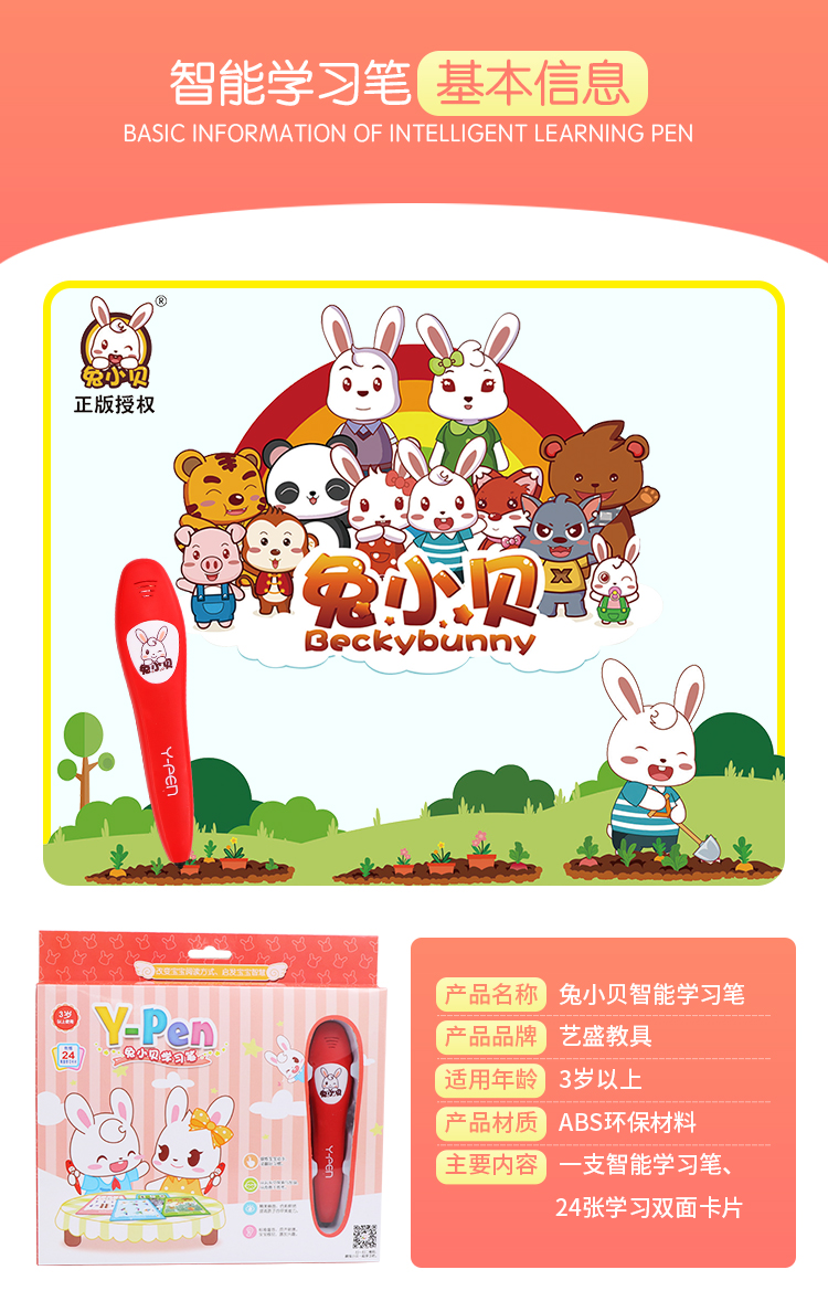 YS2807D 兔小贝24张卡片常识认知智能学习笔