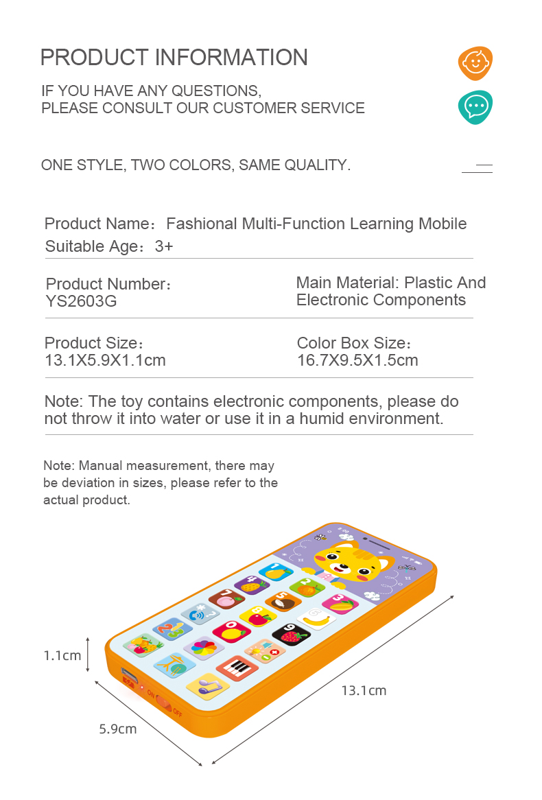 YS2603G 阿文学习玩具充电手机